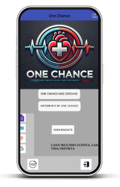 Para concienciar a la población, hemos desarrollado una aplicación que muestra un mapa con los dispositivos One Chance más cercanos y accesibles. Además, permite contactar directamente con el 112 e incluye una sección informativa sobre estas patologías.