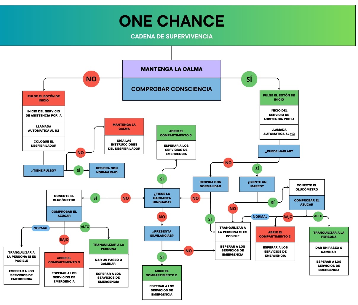 - Botón de emergencias: activación de asistencia inmediata con 112 y sistema de inteligencia artificial basado en un árbol de decisiones. El sistema de IA agiliza la respuesta de forma precisa mediante una serie de cuestiones clave, que además se trasmiten al 112 simultáneamente, y controlando también el sistema de apertura de puertas para una mayor seguridad.